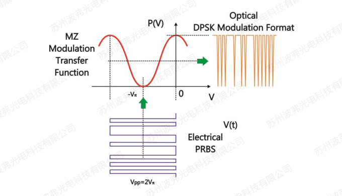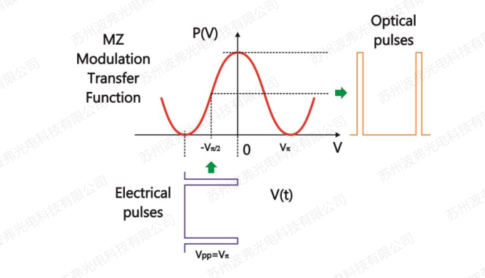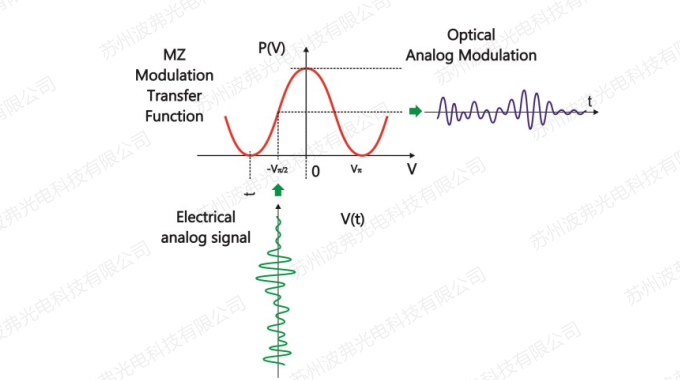模擬電子信號 < Vp峰間電壓作用于調制器上,重現(xiàn)輸出光信號