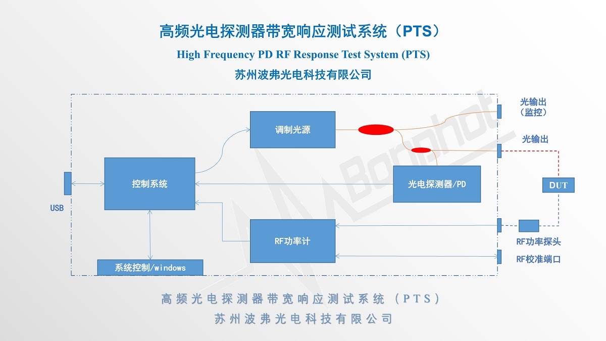 蘇州波弗光電科技有限公司供應(yīng)的光電探測器帶寬響應(yīng)測試系統(tǒng)利用微波光子學(xué)技術(shù)對高速光電探測器進(jìn)行自動(dòng)測量。PTS快速且完全自動(dòng)化,可在指定頻段的任何工作頻率下產(chǎn)生高速光電探測器的射頻光電響應(yīng)(S21)。 該系統(tǒng)集成了低噪聲、平坦光譜、可掃描調(diào)制光源(高達(dá)5 THz)和高精度射頻功率檢測器(高達(dá)120 GHz),以測量光電探測器的射頻光電響應(yīng)(S21)。 該系統(tǒng)通過筆記本電腦使用簡單的圖形用戶界面輕松、快速、精確地運(yùn)行。 圖中所示的PD傳輸是使用PTS的測試結(jié)果與使用Keysight商業(yè)化PNA的測試結(jié)果之間的比較。