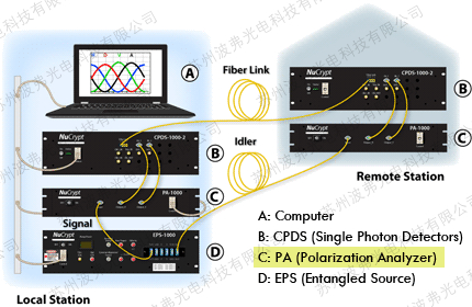 PA-1000 是一種計算機控制的光纖耦合偏振分析儀,由一個校準的偏振控制器和一個線性偏振器或一個偏振分束器組成。 四個或更多可變波片的光軸相互成 45° 角,執(zhí)行偏振控制。 它通常用于在測量光的偏振糾纏態(tài)時選擇所需的基態(tài)。 PA-1000 可以操作通過 USB 端口控制的獨立設(shè)備,也可以與其他設(shè)備(如 NuCrypt CPDS-1000 檢測系統(tǒng)和 NuCrypt Quantum 系統(tǒng)控制軟件)集成,以實現(xiàn)自動量子測量,例如兩 光子干涉 (TPI) 條紋和量子態(tài)斷層掃描 (QST)。