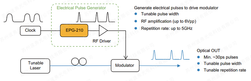 EPG-210 是一種通用解決方案,可通過驅(qū)動(dòng)鈮酸鋰調(diào)制器(高消光比調(diào)制器)或驅(qū)動(dòng)增益切換激光器來生成 <100ps 光脈沖。 特別是: