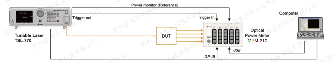 該激光器與Santec的功率計(jì)MPM-210和偏振控制器單元PCU-100集成,以創(chuàng)建交鑰匙WDL或PDL測量解決方案。Santec提供用于控制系統(tǒng)的軟件以及動態(tài)鏈接庫(DLL),以支持使用各種編程語言進(jìn)行系統(tǒng)集成和控制。