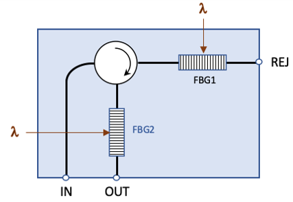 基于2個無熱FBG和一個光環(huán)行器的濾光片 |