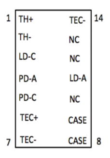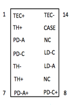 | 適合激光二極管類型 | 同軸TOSA/TO封裝 | 14PIN 蝶形封裝,2.54mm | 14PIN 蝶形封裝,2.54mm |