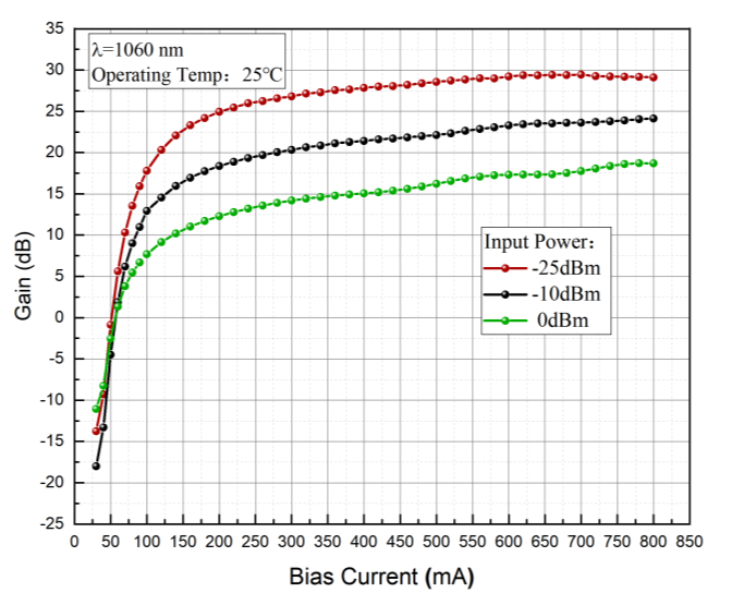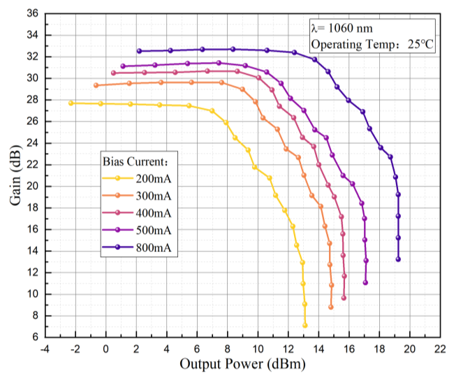1060nm波段-15dBm飽和輸出功率-25dB增益-蝶形封裝-單模光纖-FC/APC接頭 |